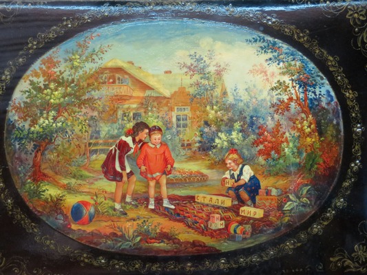 Лаковая миниатюра выполняется темперой на папье-маше. Обычно расписываются шкатулки, ларцы, брошки, панно и прочее. Типичные сюжеты палехской миниатюры позаимствованы из повседневной жизни, литературных произведений классиков, сказок, былин и песен.