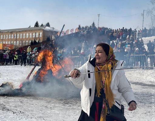 На празднике взрослые и дети соревновались в перетягивании каната, метали валенки и пилили бревна. Также для гостей подготовили барабанное шоу, игру на балалайках, хороводы и, конечно, блины.