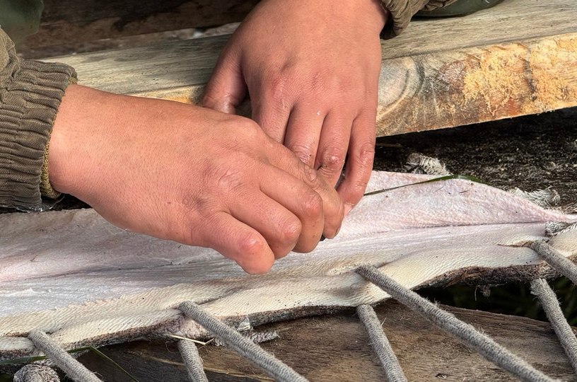 Для обшивки лодки использовали специально подготовленные шкуры двух моржих. Их вручную расщепляли, чтобы материал был тоньше, а байдара – легче. Во время работы мастера использовали и современные материалы – синтетические верёвки и парашютную ткань для паруса, который раньше делали из кишок морского зверя, пишет ИА «Чукотка».