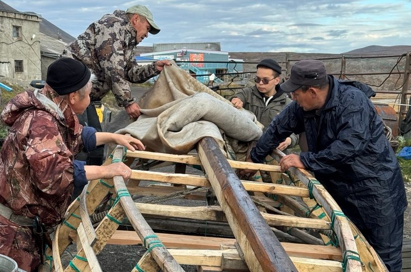 Впервые за 25 лет на Чукотке создали грузовую байдару из моржовых шкур. Строительством занимались морзверобои общины коренных малочисленных народов Севера "Сиреники".
