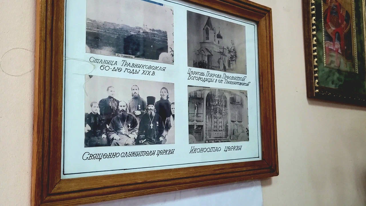 - Я очень трепетно отношусь к этой картине, ценю. Мы ее создали по рассказам старожила нашего села Алексея Иосифовича Казанцева. И вы знаете, Боженька нас поблагодарил. Буквально через месяц-два я нашла эти четыре фотографии, на которых изображена наша старинная церковь Покрова Пресвятой Богородицы. Снимки музею передала жительница Чебаркуля, – говорит Наталья Александровна. – В нашей экспозиции есть шашка, пролежавшая в земле много-много лет. Её нашли наши ребята из Травниковской станицы.