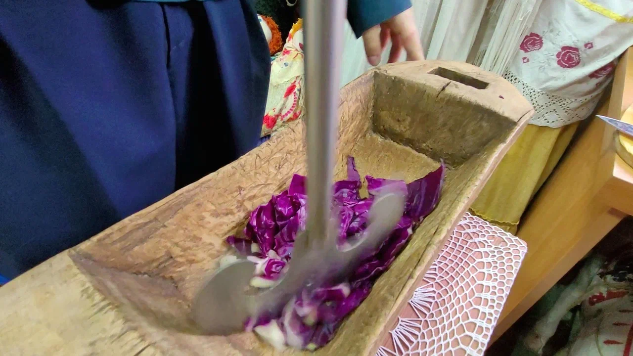 - Перед Покровом в деревнях начинались капустные посиделки. У каждой казачки обязательно была своя, именная, сечка. Ее вытачивал отец. Девки шли со своими сечками к хозяевам и спрашивали: «Можно вам капусту порубить?». Приходили парни, помогали готовить качаны – отбрасывали грязные листья и бросали девкам в колоды, – говорит Наталья Александровна. – Казачки рубили капусту, пели песни, шутили. А парни в это время присматривали себе невесту и между собой переговаривались: «Ах, а вон та-то какая работящая, какая работящая девка-то, а! Ах, казачка, да казачка какая! Да как она поёт хорошо, а как говорит-то хорошо! А вон она-то, она-то какая ладненькая, да какая скромница! Вот мне бы такую жену!». Нарубленную капусту хозяева солили, варили из нее суп, пекли пироги и пирожки.
