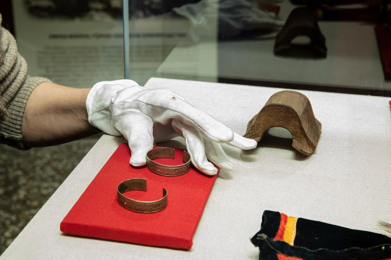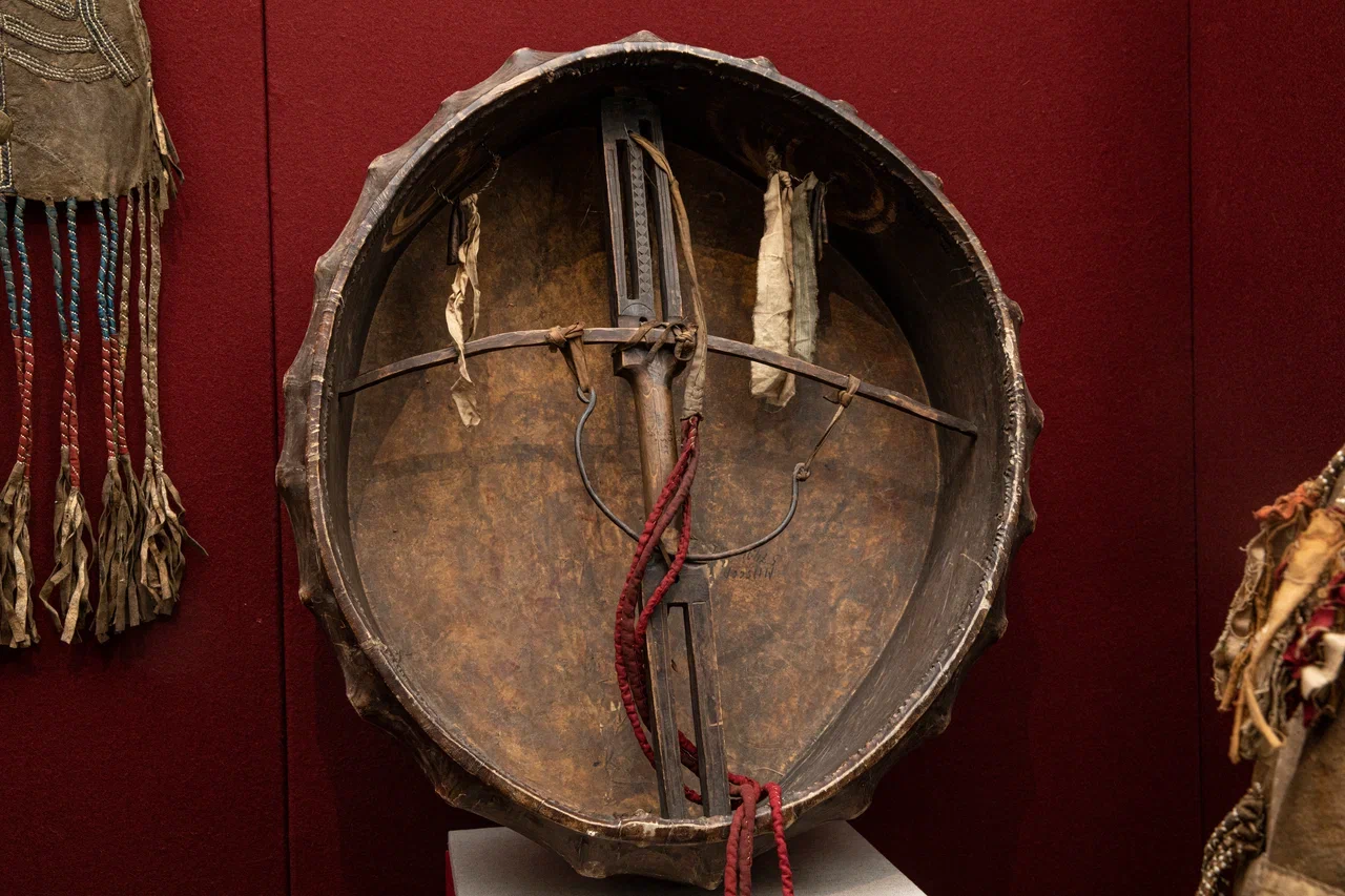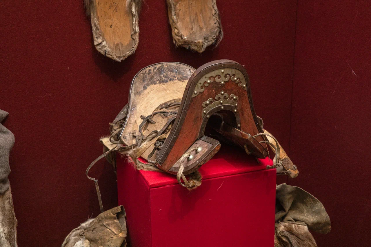 Среди уникальных экспонатов есть особо значимые: оленье седло для перевозки детской колыбели, атрибуты шаманского культа, аксессуары костюма и сумочка для детского рукоделия, украшенная китайскими монетами и так далее.