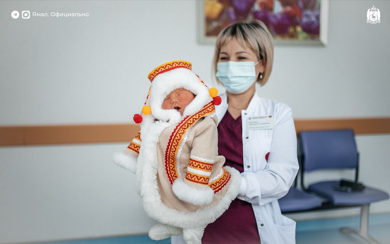 В перинатальном центре Ноябрьска к 95-летию со дня образования Ямало-Ненецкого автономного округа новорожденных начали выписывать в национальных костюмах коренных народов Севера.
