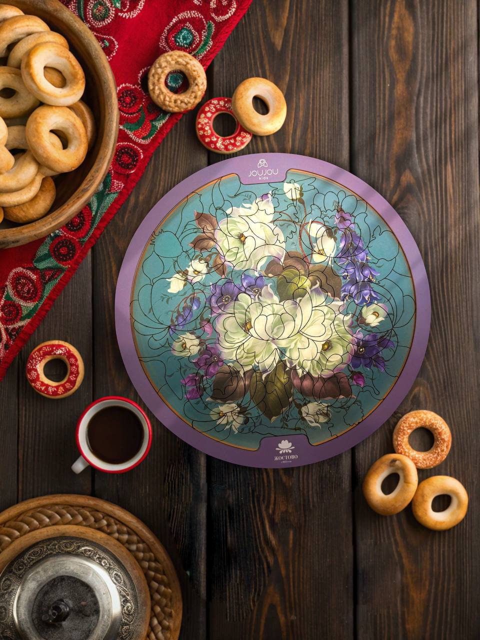 Пазл «Язык цветов», выпущенный одним из последних, создан по мотивам авторской росписи художницы Татьяны Агеевой.