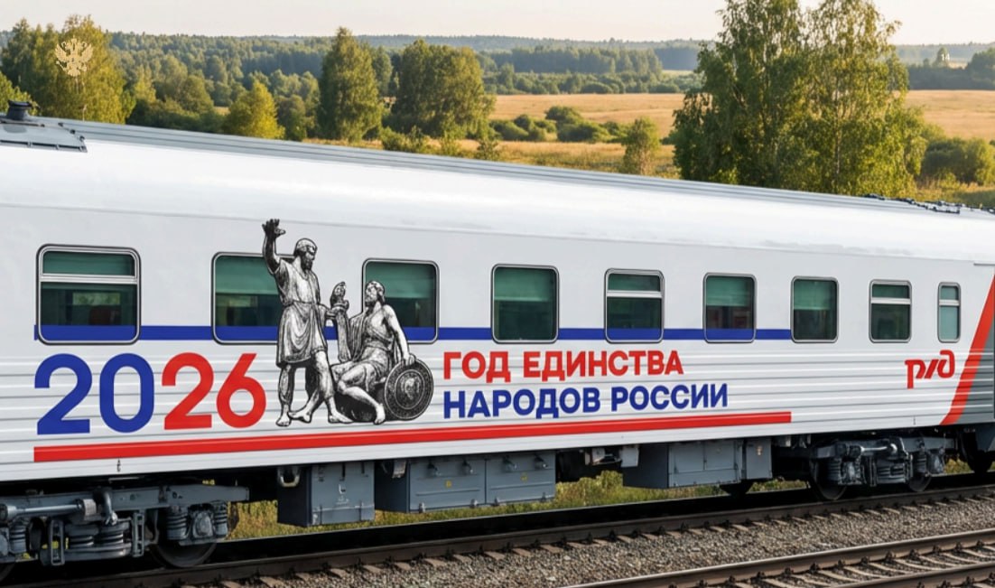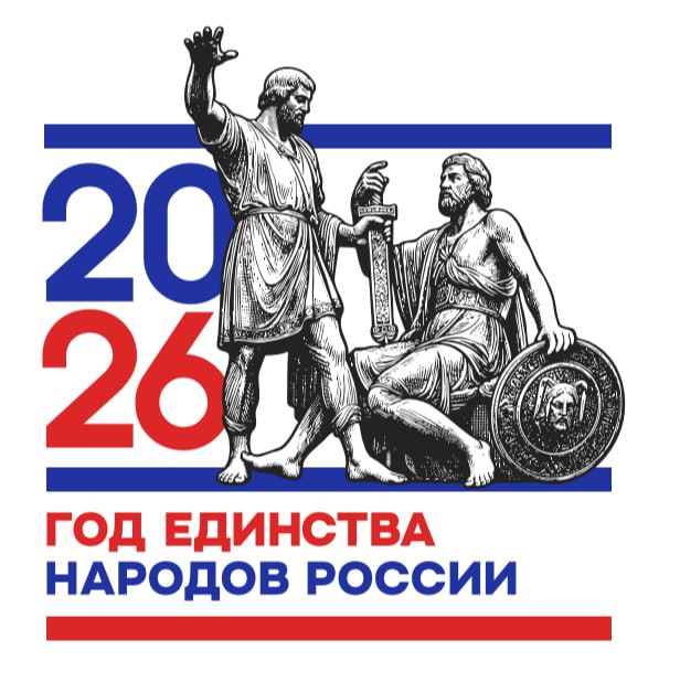 Текст «2026 год единства народов России» оформлен в красно-синих тонах.