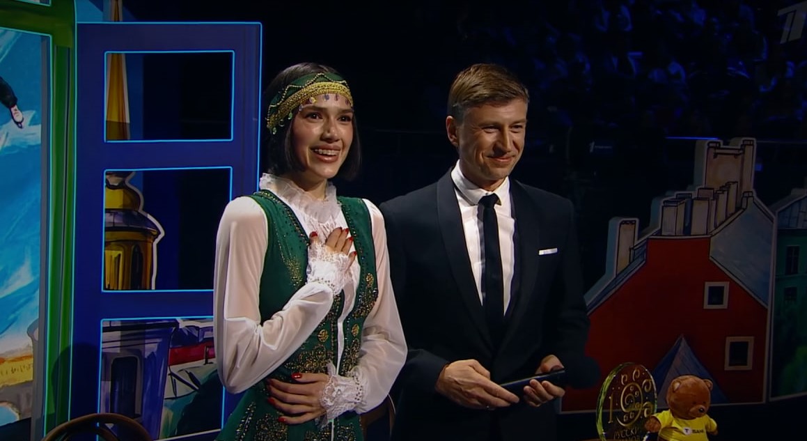 Фото: Кадры видеовыступления А. Загитовой в эфире «Первого канала»
