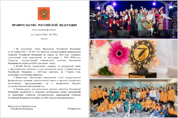 В этот раздел плана включили и Всероссийский музыкальный проект «Звук Евразии», который реализует Гильдия межэтнической журналистики. Это творческая лаборатория, в которой артисты жанра «современная этника» получают профессиональную поддержку от лучших специалистов отрасли и сценическую практику.