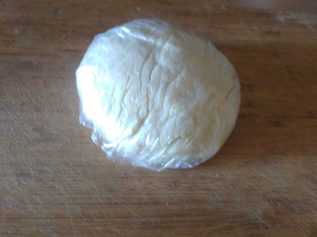 Тесто должно получится достаточно крутым, но эластичным. Завернуть его в пленку и оставить на час.