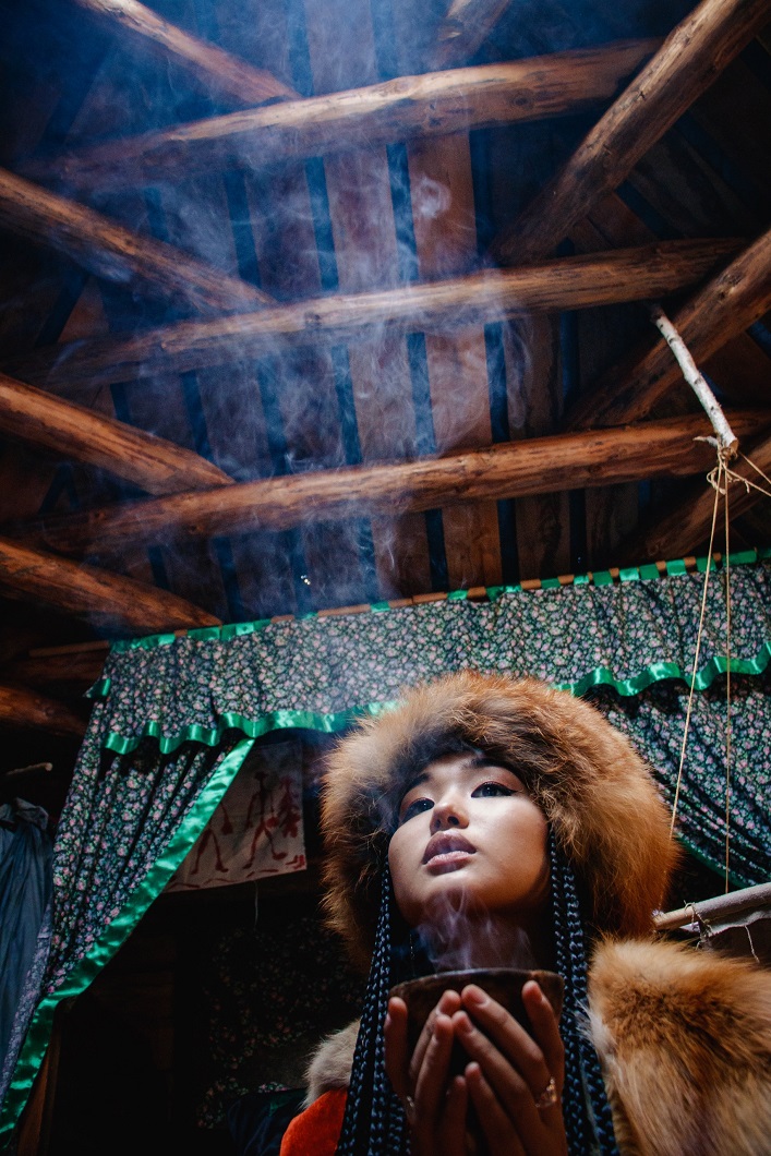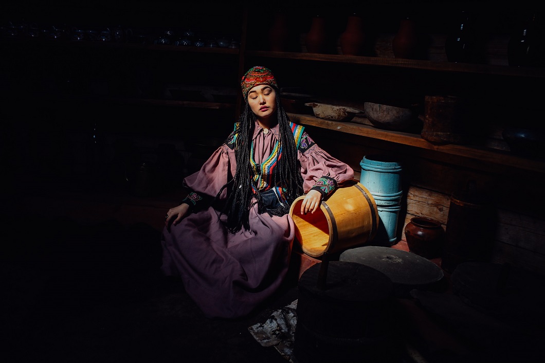 Поначалу я стремилась воссоздавать исконный быт: первые серии снимков были сделаны в хакасской юрте музея-заповедника «Казановка». Это этнографический музей под открытым небом. Здесь в полной мере восстановлен национальный интерьер и традиции хакасов, бережно сохраненные из глубины веков.