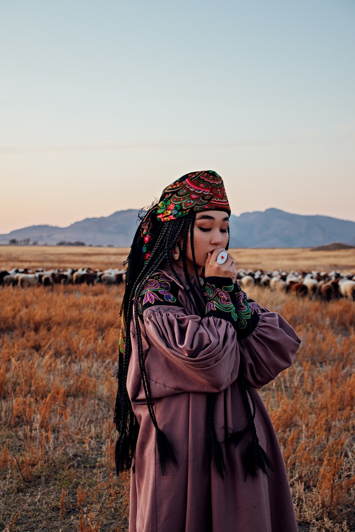 А полгода спустя меня пригласили снимать видеовизитку для регионального конкурса красоты. Его участница, Алина Аскаракова, тоже родом из Хакасии, долгое время жила в Норильске. Она очень скучала по родным краям и вдали от дома начала понимать красоту и уникальность хакасской культуры. Вернувшись на родину, начала участвовать в конкурсах красоты. И через свои номера показывала любовь к своей родине. Об этом и было видеовизитка, мы снимали весь день в селе Казановка. Там есть красивый аутентичный музей под открытым небом. Тогда я впервые увидела невероятное величие этого места и сделала несколько фотографий с Алиной в национальном костюме.