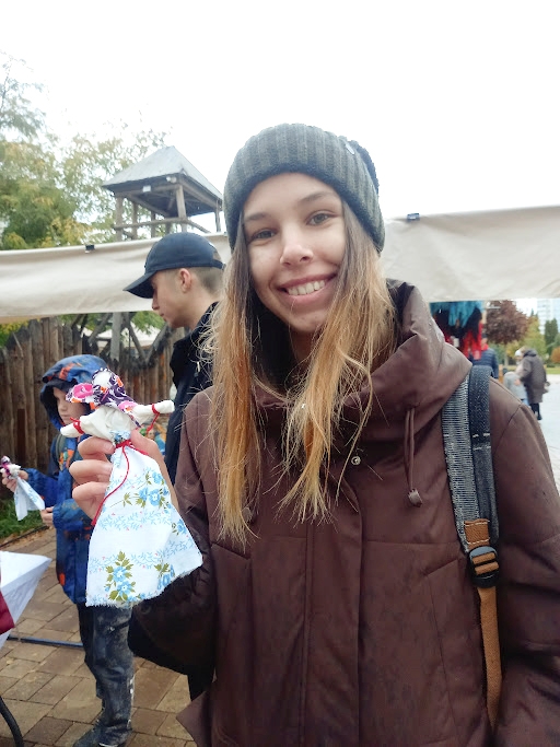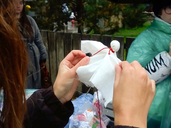 И вот уже проступают очертания тельца, юбки, платка... Безликий тряпичный комок вдруг становится ожившей куклой с характером. Таким незамысловатым образом гости создавали сувенир, который могли забрать на память. Несмотря на одинаковую технику, куколки у всех получались уникальные. Каждая получила своё имя и попала в любящие руки новых хозяев.