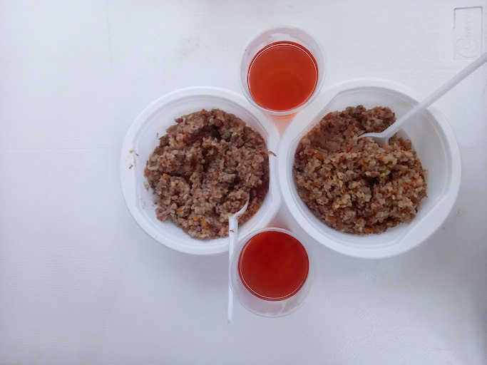 С основным блюдом всё оказалось намного сложнее. Оно было больше похоже на полевую кашу, а не кулеш. Расхождение между ожидаемым кулешом и гречневой кашей разожгло наше журналистское любопытство. Мы начали расследование. Как, из чего нам готовили обед?