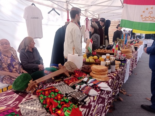 Также нам удалось поговорить с представителями таджикской диаспоры. Они рассказали о традиционном головном уборе - тюбетейке. Каждый узор на нем имеет особое, сакральное значение. Нередко и сейчас они вышиваются талантливыми рукодельницами вручную. Как правило, тюбетейки поделены на четыре части, что может означать четыре времени года или четыре стихии, а узоры служат оберегом от сглаза или символизируют различные природные объекты. Помимо этого, на столе у представителей таджикской диаспоры можно было увидеть «джурабы»— это теплые, связанные спицами из шерсти, носки, которые помогают жителям горных районов Таджикистана спасаться от холодов. Были представлены и некоторые блюда, которые нередко можно увидеть на таджикском столе: плов из баранины, пахлава, финики и прочие виды сухофруктов.
