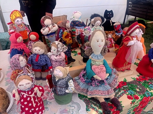 Так, один из представителей терского казачества рассказал о старинном ремесле, которым владеет его жена и о блюдах, которые вот уже не одно столетие подаются на традиционный стол: «Вот здесь вы можете увидеть кукол ручной работы, каждую из них моя жена изготавливает исключительно вручную. Ни один стежок здесь не был прошит на швейной машине! Все сама. И лица, и одежку создает. Подставки из дерева выстругал уже я, помогаю ей, как могу. Вы знаете, у нас весь дом в них, в каждой комнате по несколько кукол!.. Но очень ей это нравится. Шьет не на продажу, а для души. Чуть левее – сушеная и жареная рыба. Рыболовство является, можно сказать, традиционным в казачестве. Рыбой я всегда занимаюсь сам. Жена у меня, конечно, и сама умеет все это делать, но у нас не принято, чтобы женщина занималась рыбой и мясом. Но всю эту выпечку, что вы видите на столе — все это приготовили наши женщины. Еще на нашем столе вы можете увидеть молодое вино, которое мы называем «чихирь». Его делали еще наши предки». Супруга казака также рассказала о том, что в их семье, как и во многих казачьих семьях, все женщины традиционно занимаются различными видами рукоделия. Также на мероприятии казаки, поддерживаемые аплодисментами гостей и участников мероприятия, исполнили свои танцы, чем вызвали восторг у зрителей.