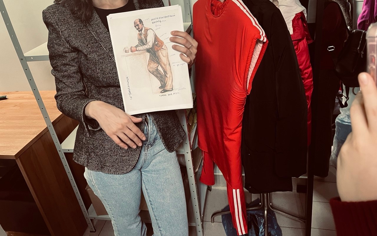 Спускаемся в гримерку к одному из ведущих артистов. Здесь царит особая, сосредоточенная атмосфера. На столе - кисти, краски, парики.Рядом, в костюмерной, - настоящее царство истории. Платья с татарским национальным орнаментом, строгие казачьи мундиры, советские пиджаки. Костюмер со знанием дела подбирает аксессуары.