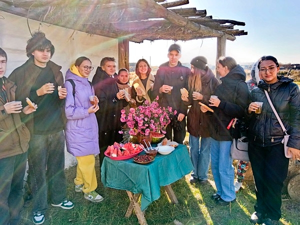 Казачьими песнями встретили гостей хуторяне, а после показали, как растопить казачью уличную печь – горнушку и приготовить на ней ароматный чай из донских трав, угостили арбузом и вареньем из дыни с домашним хлебом.