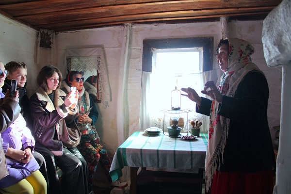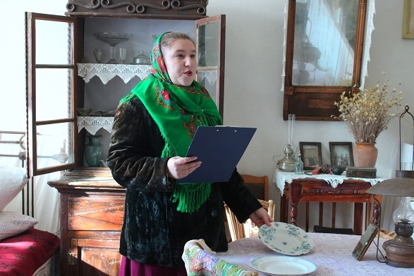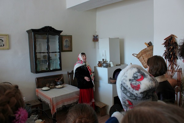 Своими глазами слушатели увидели, как выглядела горнушка, землянка, амбар и предметы утвари.