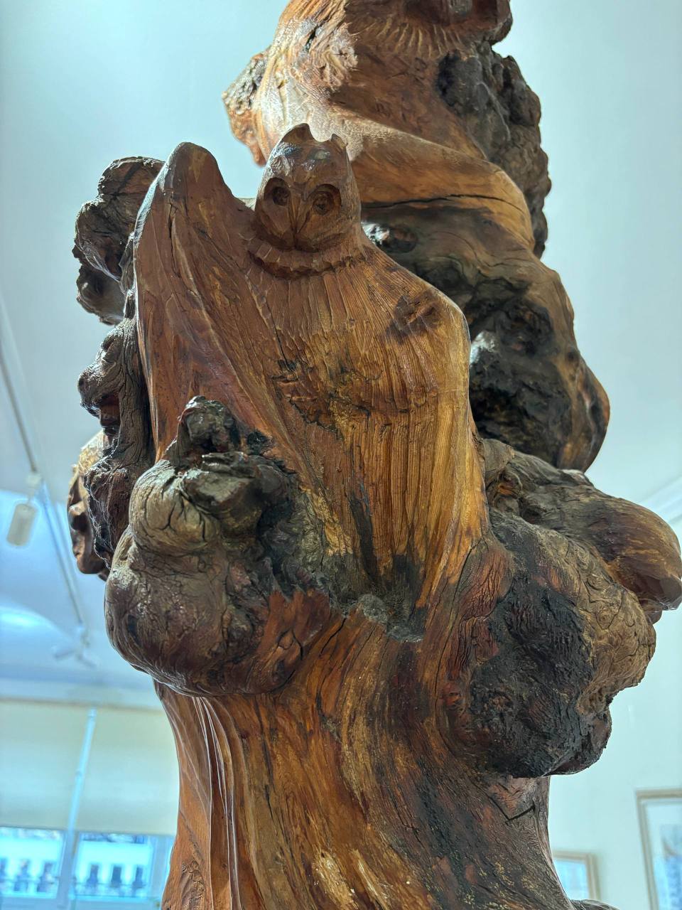 Когда мы подошли ближе, я поняла, что это не просто скульптура, а целая вселенная: более двадцати образов, вырезанных из единого массива дерева.