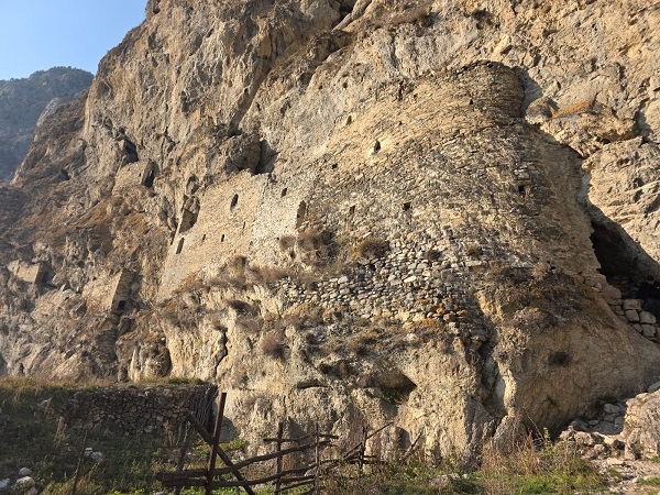 Главное укрепление, расположенное на нижнем уровне, отличается значительными размерами; доступ к нему возможен по выложенной из камня лестнице. К другим постройкам вели проходы по высеченным в скалах тропинкам и навесным лестницам. В ходе боевых действий каждое укрепление приобретало автономность, а сама пещера имела общую глубину 65 метров. Отметим, что архитектура крепости сочетает черты осетинского народного зодчества и традиционные приемы построек горных крепостей Северного Кавказа.